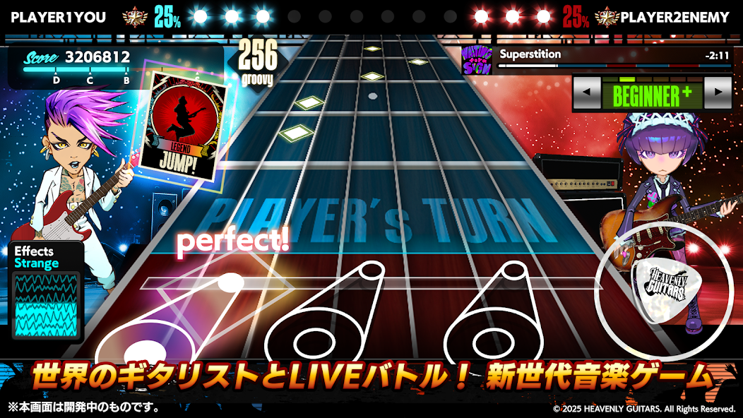 Heavenly Guitarsは、ただ譜面を叩いて終わりではなく、対戦中の状況を見て打ち手を調整していくリズムゲームなんですよ。